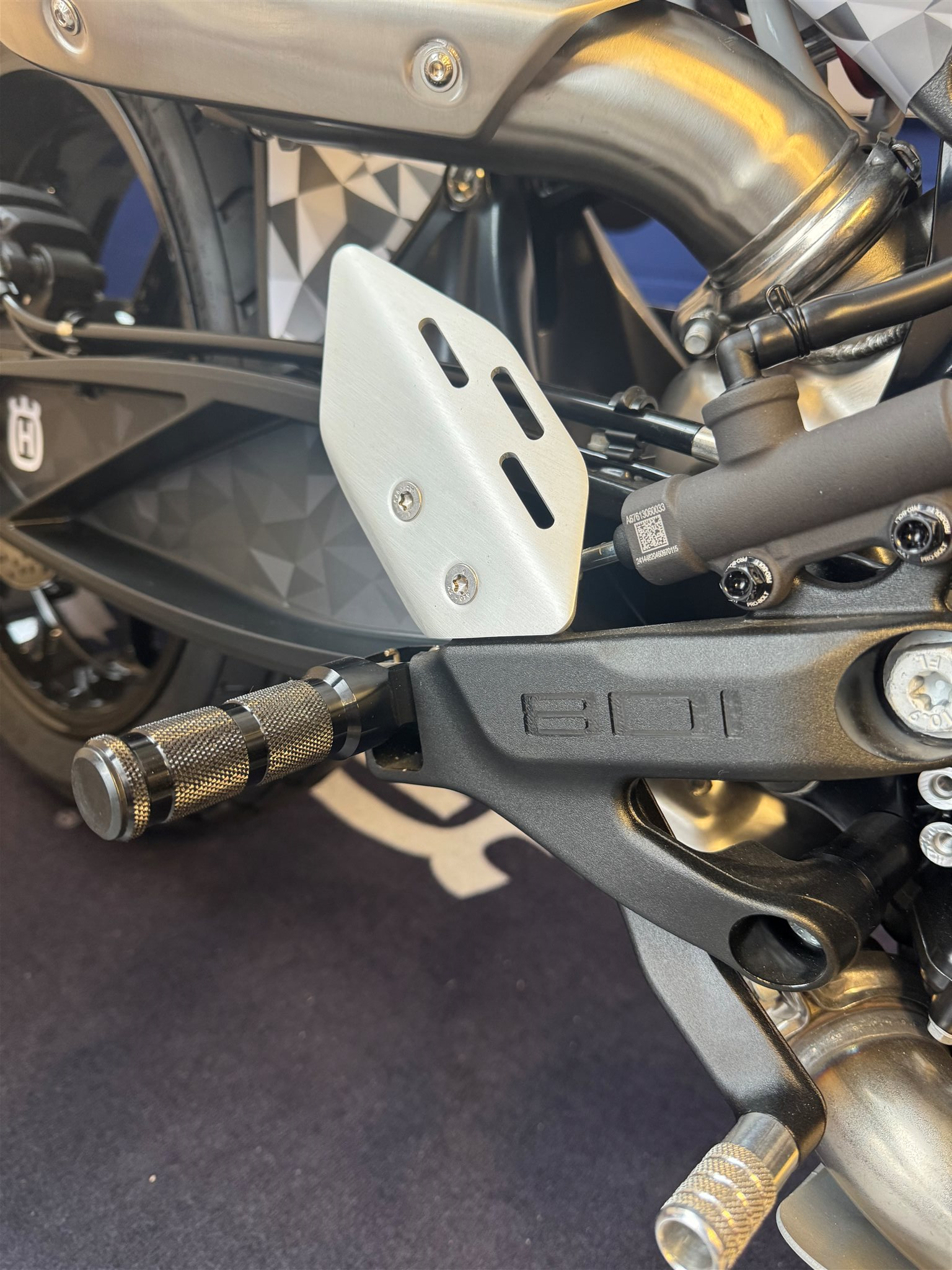 -Halter für Auspuff zwecks Demontage der Soziusfußrasten